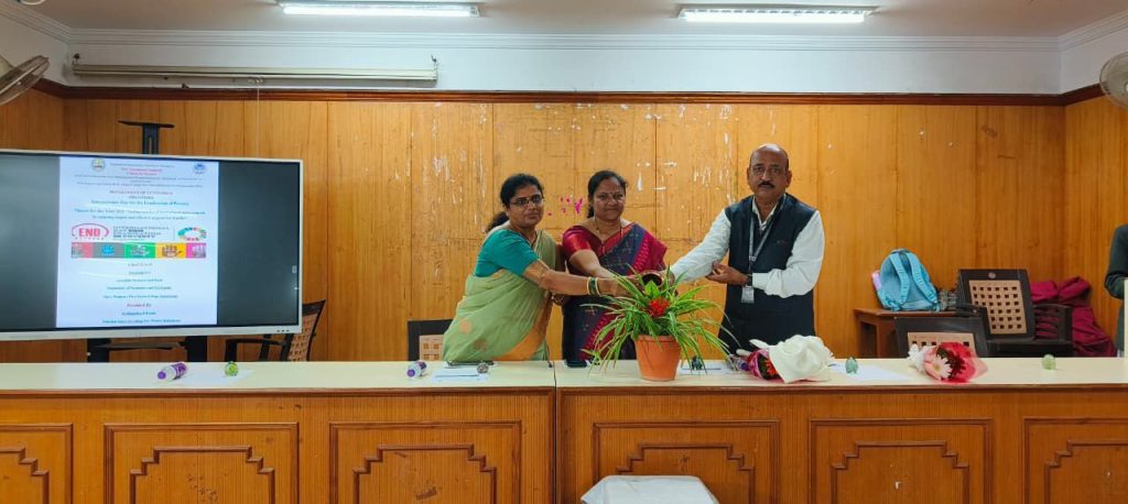 ಕಲಬುರಗಿ.17.ಅಕ್ಟೋಬರ.25:- ಕಲಬುರಗಿ ನಗರದ ಶ್ರೀಮತಿ ವೀರಮ್ಮ ಗಂಗಸಿರಿ ಮಹಿಳಾ ಮಹಾವಿದ್ಯಾಲಯದ ಅರ್ಥಶಾಸ್ತ್ರ ವಿಭಾಗದ ವತಿಯಿಂದ ಅಂತರರಾಷ್ಟ್ರೀಯ ದಾರಿದ್ರ್ಯ ನಿರ್ಮೂಲನ ದಿನ-2025. 17-10- 2025ರಂದು ಹಮ್ಮಿಕೊಳ್ಳಲಾಯಿತು. ಪ್ರತಿ ವರ್ಷ ಅಕ್ಟೋಬರ್ 17ರಂದು ದಾರಿದ್ರ್ಯ ನಿರ್ಮೂಲನೆಗಾಗಿ ಅಂತರರಾಷ್ಟ್ರೀಯ ದಿನವನ್ನು ಆಚರಿಸಲಾಗುತ್ತದೆ.
