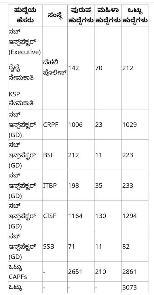 ಹೊಸ ದೆಹಲಿ.30.ಸೆಪ್ಟೆಂಬರ್.25:- ಸ್ಟಾಫ್ ಸೆಲೆಕ್ಷನ್ ಕಮಿಷನ್ ವತಿಯಿಂದ 3073 ತನ್ನ ಪ್ರಮುಖ ನೇಮಕಾತಿ ಪ್ರಕ್ರಿಯೆ ಇಲಾಖೆಯ ಅಧೀನದಲ್ಲಿ ದೆಹಲಿ ಪೊಲೀಸ್ ಹಾಗೂ ಕೇಂದ್ರ ಸಶಸ್ತ್ರ ಪೊಲೀಸ್ ಪಡೆಗಳ (CAPFs) ಸಬ್ ಇನ್ಸ್ಪೆಕ್ಟರ್ ಹುದ್ದೆಗಳ ನೇಮಕಾತಿ ಪ್ರಕಟಿಸಿದೆ.