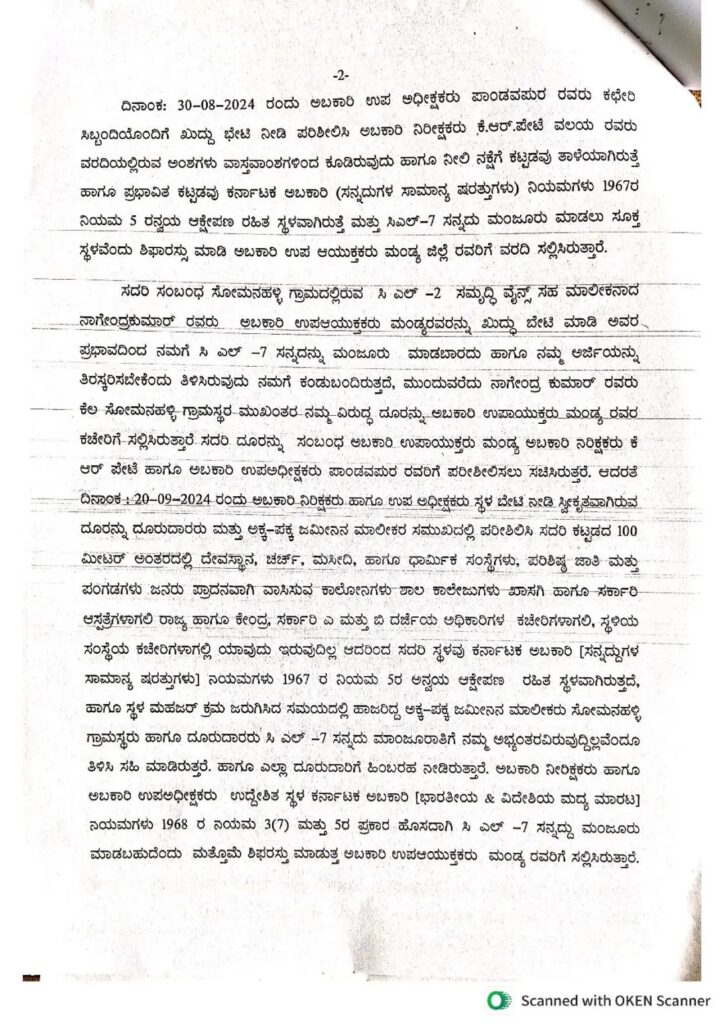 ಮಂಡ್ಯ ಜಿಲ್ಲೆಯ ಮಂಡ್ಯ ನಗರದ ಕೇಂದ್ರಸ್ಥಾನದಲ್ಲಿರುವ ಅಬಕಾರಿ ಕಚೇರಿಗಳಲ್ಲಿ ಬ್ರಹ್ಮಾಂಡ ಭ್ರಷ್ಟಾಚಾರ ನಡೆಯುತ್ತಿದೆ. ಅಬಕಾರಿ ಮಂತ್ರಿ, ಜಿಲ್ಲಾ ಉಸ್ತುವಾರಿ ಸಚಿವ, ಸಿಎಂ ಮತ್ತು ಇಲಾಖೆ ಆಯುಕ್ತ ಹೆಸರಿನಲ್ಲಿ ಅಧಿಕಾರಿಗಳು, ಮದ್ಯದಂಗಡಿಗಳಲ್ಲಿ ಹ್ತಾ ವಸೂಲಿ ಮಾಡುತ್ತಿದ್ದಾರೆ. ಹೊಸದಾಗಿ ಹೋಟೆಲ್ ಮತ್ತು ವಸತಿ ಗೃಹ(ಸಿಎಲ್-7) ಪರವಾನಗಿ ಮಂಜೂರಾತಿ ಕೊಡಲು ಜಾತಿ ನೋಡಿ ಲಂಚ ನಿಗದಿ ಮಾಡುತ್ತಿದ್ದಾರೆ. ಸಿಎಲ್7 ಲೈಸೆನ್ಸ್ ನೀಡಲು 60 ಲಕ್ಷ ರೂ.ಬೇಡಿಕೆ ಇಟ್ಟಿರುವ ಮಂಡ್ಯ ಅಬಕಾರಿ ಉಪ ಆಯುಕ್ತ ವಿರುದ್ಧ ಈಗಾಗಲೇ ಕೆಲವರು ಲೋಕಾಯುಕ್ತಕ್ಕೆ ದೂರು ಕೊಟ್ಟಿದ್ದಾರೆ ಎಂದು ರಾಜ್ಯಪಾಲರಿಗೆ ಕೊಟ್ಟಿರುವ ದೂರಿನಲ್ಲಿ ಸಂಘದ ಅಧ್ಯಕ್ಷ ಇ.ಎನ್.ಕೃಷ್ಣೇಗೌಡ ಉಲ್ಲೇಖಿಸಿದ್ದಾರೆ.