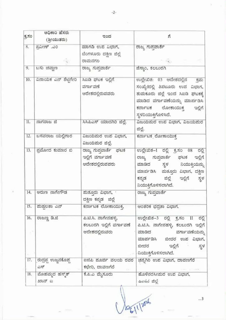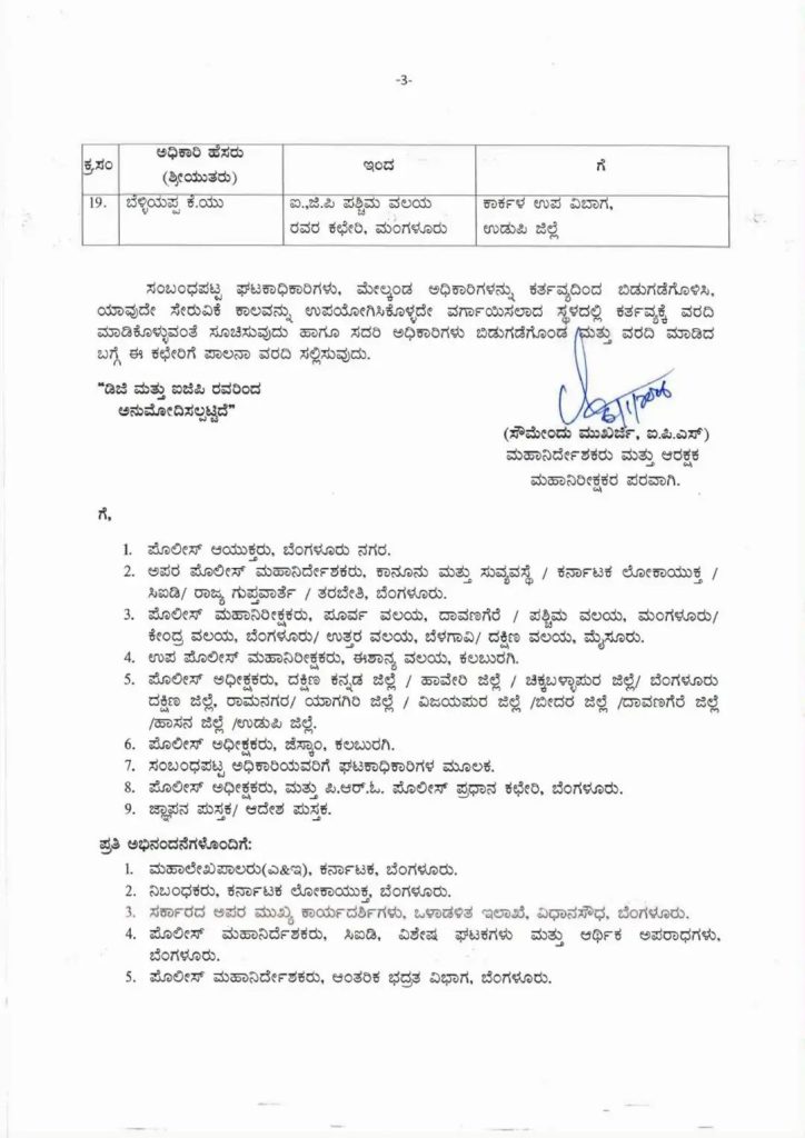 ಹೀಗಿದೆ 19 ಡಿವೈಎಸ್ಪಿ ವರ್ಗಾವಣೆ ಯಾದಿ.