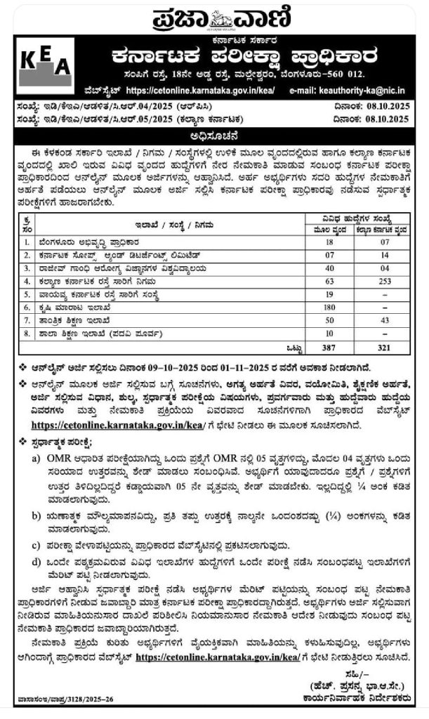 ಹೆಚ್ಚಿನ ವಿವರಗಳಿಗೆ cetonline.Karnataka.gov.in/kea/ ಭೇಟಿ ನೀಡಬೇಕು.