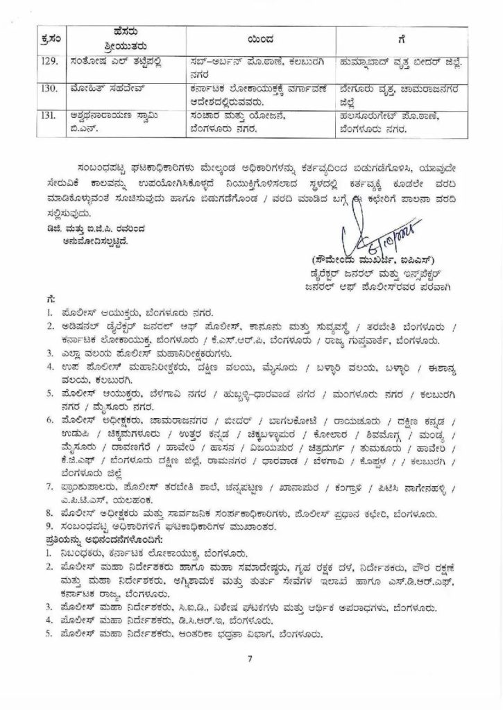 ಈ ಕುರಿತಂತೆ ಡೈರಕ್ಟರ್ ಜನರಲ್ ಮತ್ತು ಇನ್ಸ್ ಪೆಕ್ಟರ್ ಜನರ್ ಆಫ್ ಪೊಲೀಸ್ ಅವರು ವರ್ಗಾವಣೆ ಆದೇಶ ಹೊರಡಿಸಿದ್ದಾರೆ.