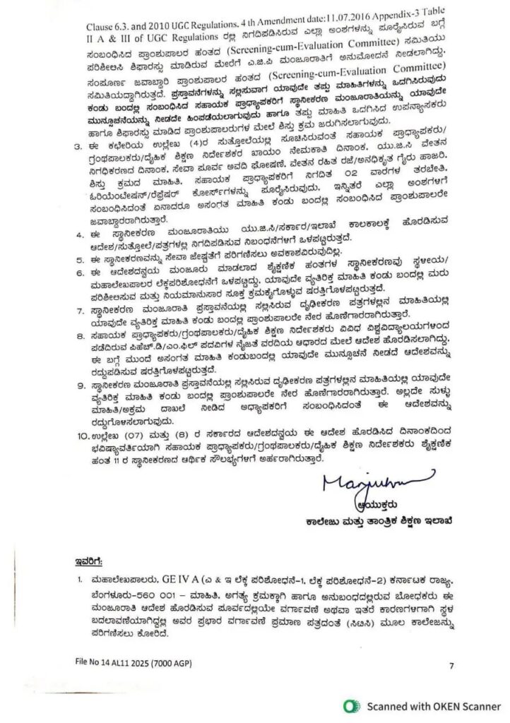 De ಸ್ಥಾನೀಕರಣ ಮಂಜೂರಾತಿಯು ಯು.ಜಿ.ಸಿ/ಸರ್ಕಾರ/ಇಲಾಖೆ ಕಾಲಕಾಲಕ್ಕೆ ಹೊರಡಿಸುವ ಆದೇಶ/ಸುತ್ತೋಲೆ/ಪತ್ರಗಳಲ್ಲಿ ನಿಗದಿಪಡಿಸುವ ನಿಬಂಧನೆಗಳಿಗೆ ಒಳಪಟ್ಟಿರುತ್ತದೆ.