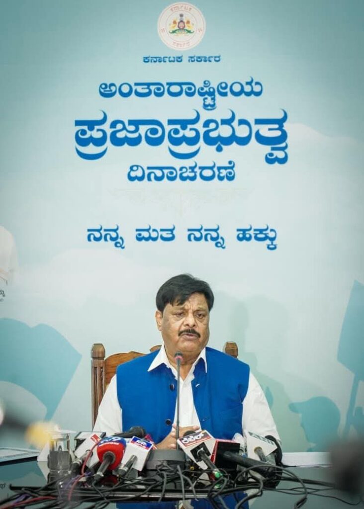 ರಾಜ್ಯಾದ್ಯಂತ ಸೆಪ್ಟೆಂಬರ್ 15 ರಂದು ಅಂತರ ರಾಷ್ಟ್ರೀಯ ಪ್ರಜಾಪ್ರಭುತ್ವ ದಿನವನ್ನು ಅರ್ಥಪೂರ್ಣವಾಗಿ ಆಚರಿಸಲು ರಾಜ್ಯ ಸರ್ಕಾರವು ಸಜ್ಜಾಗಿದೆ. ಈ ದಿನಾಚರಣೆಯು ಸಂವಿಧಾನ, ಸ್ವಾತಂತ್ರ್ಯ, ಸಮಾನತೆ ಮತ್ತು ಸಾಮಾಜಿಕ ನ್ಯಾಯದ ಮೌಲ್ಯಗಳನ್ನು ಎತ್ತಿಹಿಡಿಯುವ ಗುರಿಯನ್ನು ಹೊಂದಿದೆ ಎಂದು ಸಮಾಜ ಕಲ್ಯಾಣ ಸಚಿವ ಡಾ.ಎಚ್.ಸಿ. ಮಹದೇವಪ್ಪ ತಿಳಿಸಿದ್ದಾರೆ.