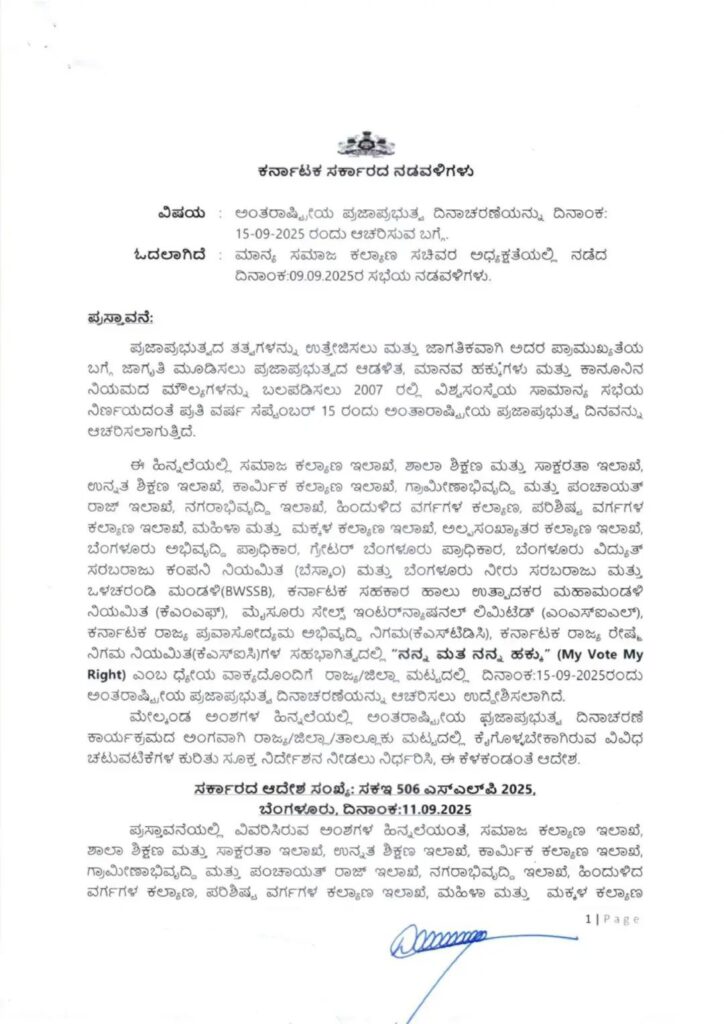 Any questions related to ಸೆ.15ಕ್ಕೆ ರಾಜ್ಯಾದ್ಯಂತ ಪ್ರಜಾಪ್ರಭುತ್ವ ದಿನ ಆಚರಣೆ?