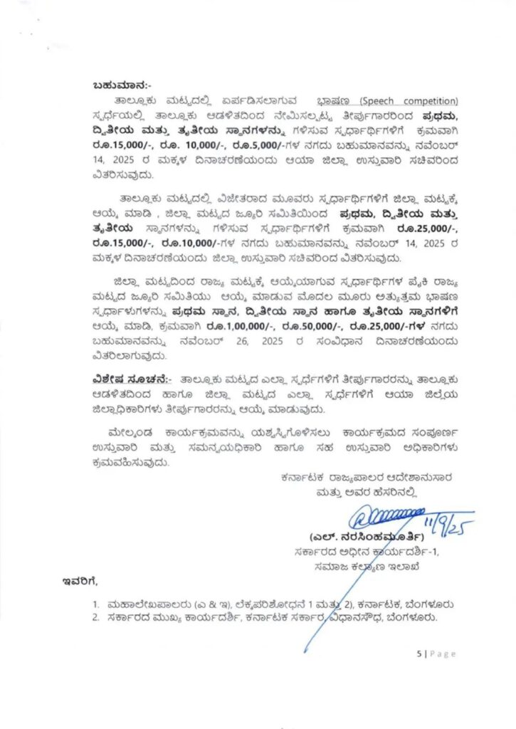 ದೈನಂದಿನ ಜೀವನದಲ್ಲಿ ಸಾಂವಿಧಾನಿಕ ಮೌಲ್ಯಗಳನ್ನು ಬಲಪಡಿಸುವ ನಿಟ್ಟಿನಲ್ಲಿ, ಶಾಲೆಗಳು, ಕಾಲೇಜುಗಳು, ಸರ್ಕಾರಿ ಕಚೇರಿಗಳು ಮತ್ತು ಸಮುದಾಯ ಕೇಂದ್ರಗಳಲ್ಲಿ ಸಾರ್ವಜನಿಕವಾಗಿ ಸಂವಿಧಾನದ ಪೀಠಿಕೆಯನ್ನು ಓದುವ ಕಾರ್ಯಕ್ರಮವನ್ನು ಆಯೋಜಿಸಲಾಗಿದೆ. ರಾಜ್ಯಾದ್ಯಂತ ಈ ಕಾರ್ಯಕ್ರಮಗಳನ್ನು ಪರಿಣಾಮಕಾರಿಯಾಗಿ ಅನುಷ್ಠಾನಗೊಳಿಸಲು ಸಮಾಜ ಕಲ್ಯಾಣ ಇಲಾಖೆಯು ಎಲ್ಲಾ ಇಲಾಖೆಗಳೊಂದಿಗೆ ಸಮನ್ವಯ ಸಾಧಿಸಲಿದೆ ಎಂದು ಸಚಿವರು ತಿಳಿಸಿದರು.