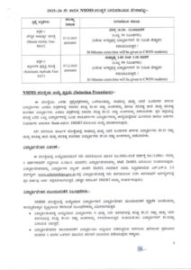 NMMS ಪರೀಕ್ಷೆಯ ಸಂಕ್ಷಿಪ್ತ ವಿವರ:- 8ನೇ ತರಗತಿಯಲ್ಲಿ ವ್ಯಾಸಂಗ ಮಾಡುತ್ತಿರುವ ಸರ್ಕಾರಿ, ಅನುದಾನಿತ ಹಾಗೂ ಸ್ಥಳೀಯ ಸಂಸ್ಥೆಗಳ (Local body schools) ಶಾಲೆಗಳಲ್ಲಿನ ವಿದ್ಯಾರ್ಥಿಗಳಿಗೆ ವಿದ್ಯಾರ್ಥಿವೇತನ ನೀಡುವುದು, ಆರ್ಥಿಕವಾಗಿ ಹಿಂದುಳಿದ ಪ್ರತಿಭಾವಂತ ವಿದ್ಯಾರ್ಥಿಗಳು ಮಾಧ್ಯಮಿಕ ಶಾಲಾ ಹಂತದಲ್ಲಿ ಶಾಲೆಯಿಂದ ಹೊರಗುಳಿಯದಂತೆ ತಡೆಯುವುದು ಮತ್ತು ಅವರ ವಿದ್ಯಾಭ್ಯಾಸದ ಮುಂದುವರಿಕೆಗೆ ಪ್ರೇರೇಪಿಸುವುದು ಈ ಯೋಜನೆಯ ಮುಖ್ಯ ಉದ್ದೇಶವಾಗಿದೆ. ಸದರಿ ಪರೀಕ್ಷೆಯನ್ನು ಕನ್ನಡ, ಇಂಗ್ಲೀಷ್, ಉರ್ದು, ಮರಾಠಿ ಮತ್ತು ತೆಲುಗು ಮಾಧ್ಯಮಗಳಲ್ಲಿ ನಡೆಸುತ್ತಿದ್ದು, ಈ ಪರೀಕ್ಷೆಯನ್ನು ಕರ್ನಾಟಕ ಶಾಲಾ ಪರೀಕ್ಷೆ ಮತ್ತು ಮೌಲ್ಯನಿರ್ಣಯ ಮಂಡಲಿಯ ಕೆ.ಎಸ್.ಕ್ಯು.ಎ.ಎ.ಸಿ ವತಿಯಿಂದ ತಾಲ್ಲೂಕು ಕೇಂದ್ರಗಳಲ್ಲಿ ನಡೆಸಲಾಗುವುದು.